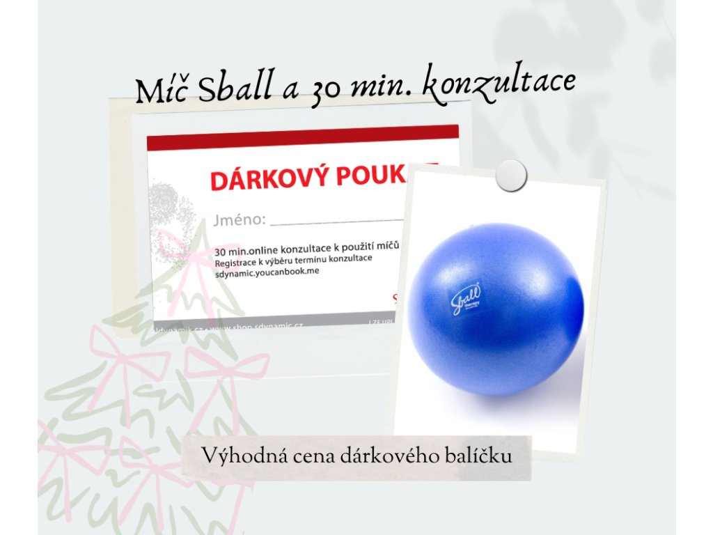 Balíček obsahuje jeden originální Sball míč a 30minutovou individuální online konzultaci v hodnotě 1000,- Kč.