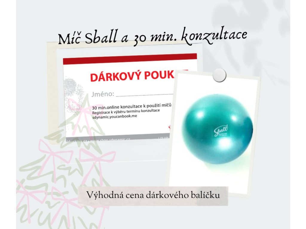 Balíček obsahuje jeden originální Sball míč a  30minutovou individuální online konzultaci v hodnotě 1000,- Kč.